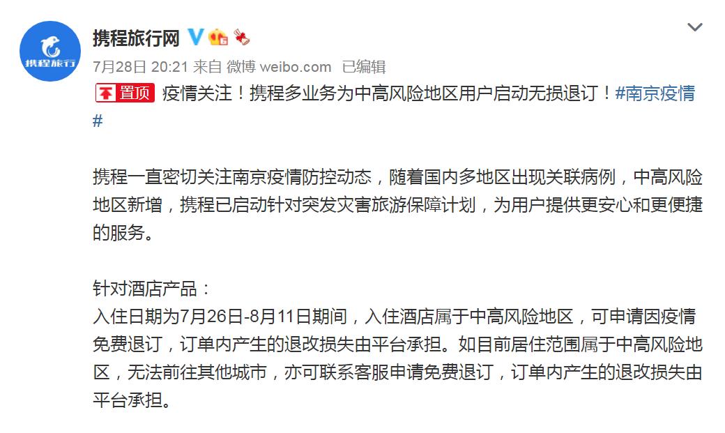 來(lái)源:攜程旅行網(wǎng)官方微博同程藝龍官方微信表示,凡是7月28日...